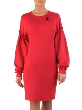 Prosta czerwona sukienka z falbankami na rękawach 30823