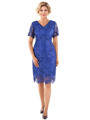 Chabrowa sukienka koronkowa na wesele – elegancka sukienka midi z dekoltem w serek 40086