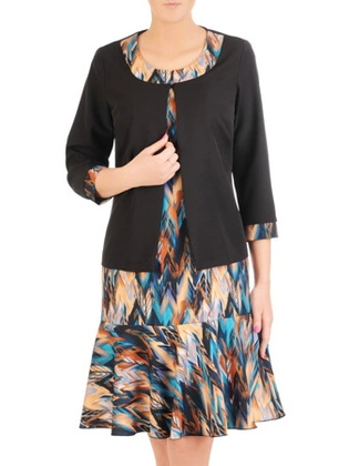 Elegancki komplet damski, wzorzysta sukienka z gładkim żakietem 32089