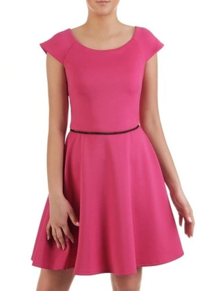Elegancka sukienka z paskiem i gumkami na rękawach 34457
