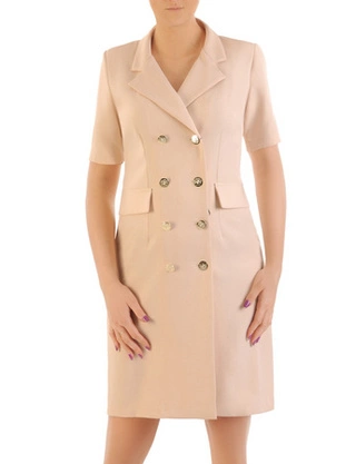 Sukienka żakietowa, dwurzędowa kreacja z ozdobną falbaną 31992