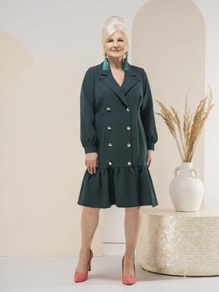 Sukienka żakietowa, dwurzędowa kreacja z ozdobną falbaną 34848