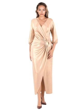 Elegancka sukienka na wesele – długa, połyskująca kreacja z kopertowym dekoltem, stylowy wybór 39658