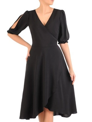 Sukienka kopertowa, wyszczuplająca kreacja z tkaniny 19910.