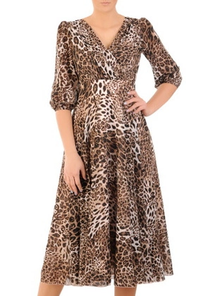 Wzorzysta, rozkloszowana sukienka z kopertowym dekoltem 30909
