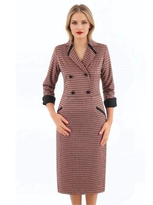 Kopertowa sukienka w pepitkę, elegancka kreacja z modnym kołnierzem 38930