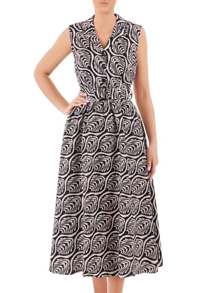 Modna sukienka midi, rozkloszowana kreacja z falbanami 28221
