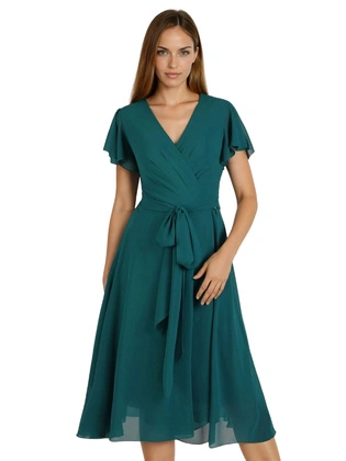 Sukienka na wesele, elegancka, letnia kreacja z kopertowym dekoltem 38199