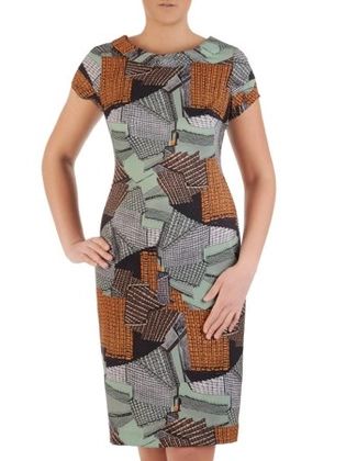 Wzorzysta sukienka z półgolfem, kreacja w modnych kolorach 25042