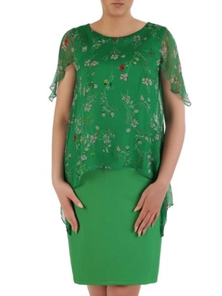 Błyszcząca sukienka Flawia IX, kreacja z szyfonową narzutką.