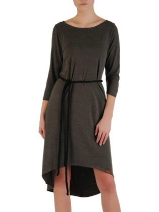 Asymetryczna sukienka, dzianinowa kreacja z modnym paskiem 19516