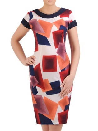 Sukienka z tkaniny, prosta kreacja w geometrycznym wzorze 20655.