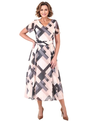 Trapezowa sukienka damska, wiosenna kreacja w oryginalny wzór 35566
