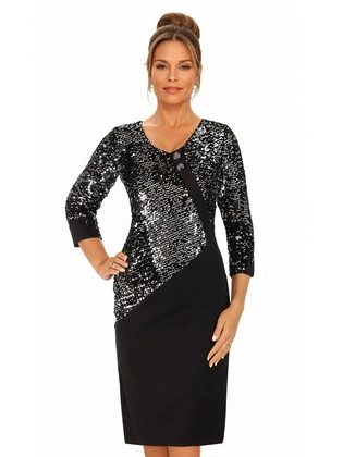 Prosta sukienka z oryginalnym połyskującym topem, elegancka kreacja wyszczuplająca brzuch 24266