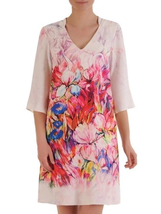Lniana sukienka z ozdobnie wyciętym dekoltem 29021