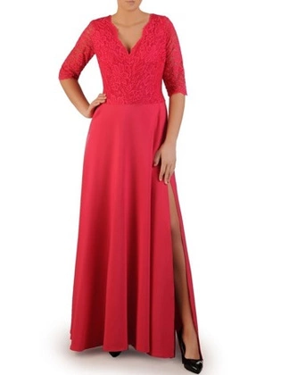 Wieczorowa sukienka maksi z ozdobnym rozcięciem 35661