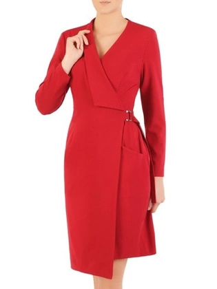 Kopertowa sukienka z ozdobną klamrą, kreacja z kieszeniami 30094