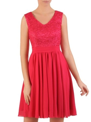 Sukienka wykończona koronką 15747, kreacja z modnym dekoltem.