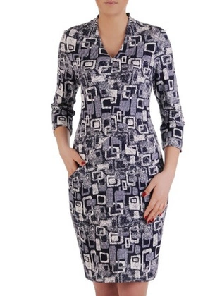 Wyszczuplająca sukienka z imitacją żakietu, kreacja z ozdobną baskinką 36569