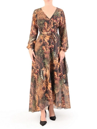 Sukienka damska na lato, elegancka, długa kreacja w kopertowym fasonie 33094