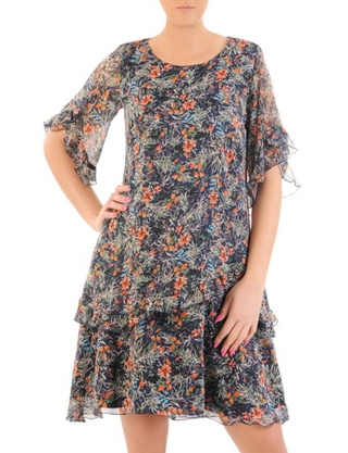 Sukienka z szyfonu, luźna kreacja z falbanami 25625