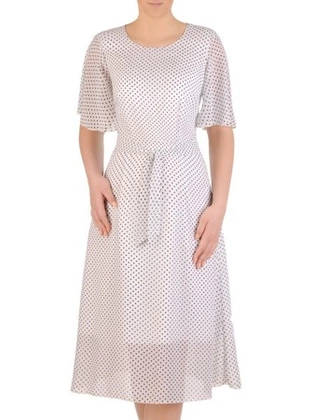 Sukienka z szyfonu, zwiewna kreacja w groszki 20632.