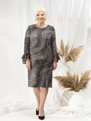 Prosta sukienka z finezyjnymi rękawami, kreacja na każdą okazję 31185
