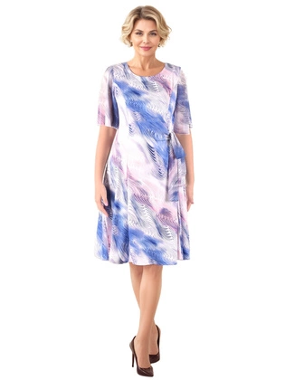 Fioletowa sukienka midi z dzianiny – wygodny fason trapezowy, idealna na lato 40184