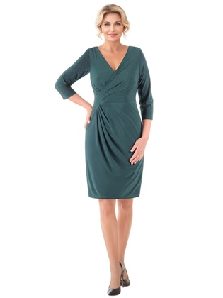 Połyskująca sukienka na wesele midi z dekoltem w serek i ozdobnym marszczeniem 39670