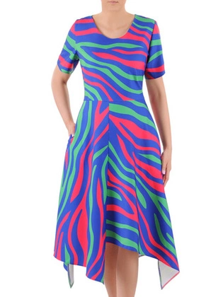 Rozkloszowana sukienka z wąskim paskiem, atrakcyjna kreacja w kwiaty 21307