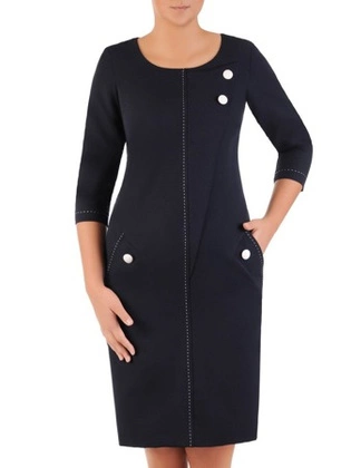 Sukienka z kontrastowym wykończeniem, granatowa kreacja wizytowa 21795