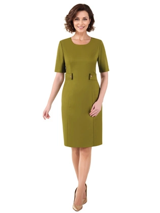 Oliwkowa sukienka koktajlowa midi z wyszczuplającymi przeszyciami – elegancka kreacja na wyjątkowe okazje 39539