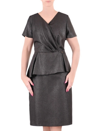 Połyskująca sukienka damska z baskinką 35270
