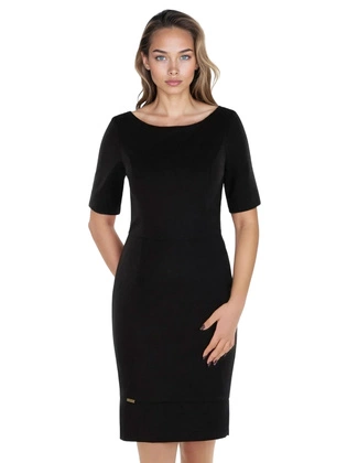 Nowoczesna sukienka z owalnym dekoltem, czarna kreacja z dzianiny 18815