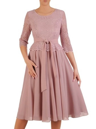 Sukienka na wesele, pudrowa kreacja z koronki i szyfonu 26370
