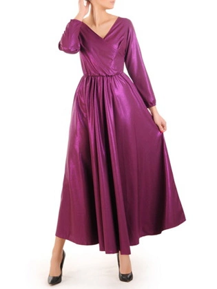 Suknia maxi z kopertowym dekoltem, kreacja z błyszczącej tkaniny 31154