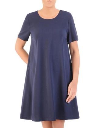 Luźna sukienka z tkaniny, granatowa kreacja z kieszeniami 32989