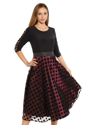 Wieczorowa sukienka z rozkloszowaną, tiulową spódnicą w groszki 31699