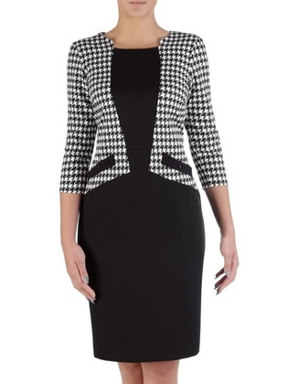 Nowoczesna sukienka z imitacją żakietu 17244, modna kreacja w pepitkę.