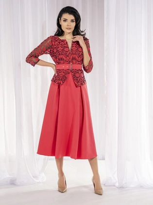 Elegancka sukienka z baskinką w kolorze koralowym 37661