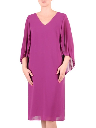 Wizytowa sukienka w luźnym fasonie, kreacja z wiązanymi mankietami 32824