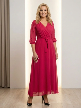 Zwiewna sukienka maxi – wyszczuplający fason z delikatnej siateczki i paskiem podkreślającym talię 39499