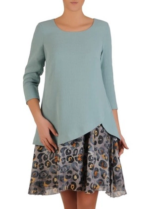 Szyfonowa sukienka o trapezowym kroju, kreacja z oryginalnym dekoltem 25040