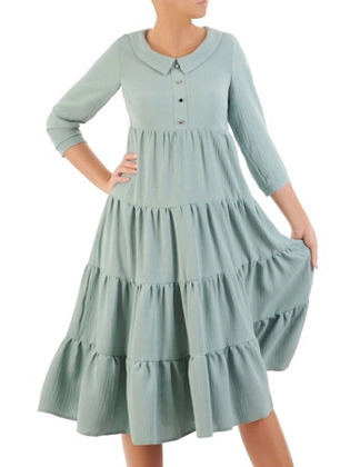 Luźna sukienka damska z ozdobnymi falbanami 33067