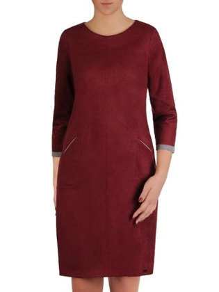 Modna sukienka ze skórzanymi lamówkami 14696, atrakcyjna kreacja wyszczuplająca.