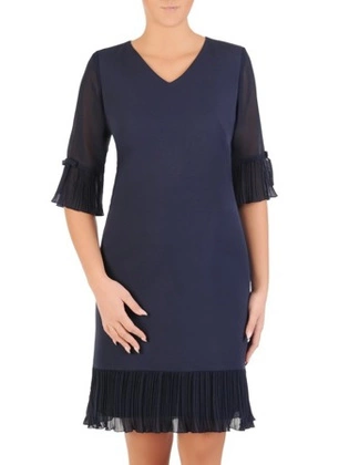 Sukienka wyjściowa, granatowa kreacja z ozdobnymi falbanami 27845