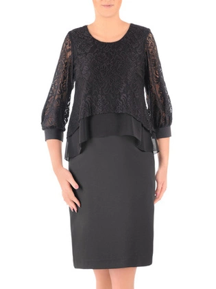 Elegancka warstwowa sukienka z koronkową górą 35137