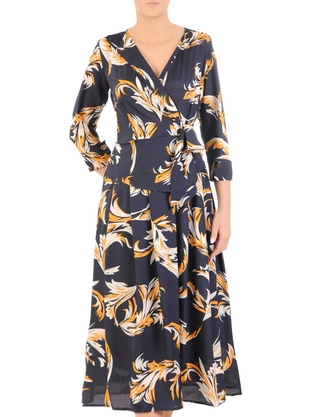 Sukienka kopertowa, granatowa kreacja w oryginalnym wzorze 33307
