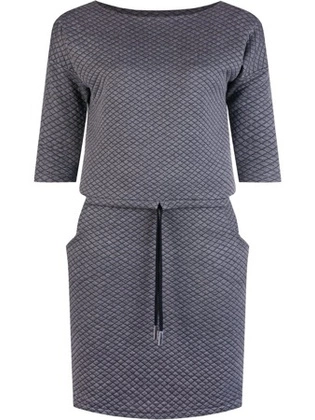 Wizytowa, popielata sukienka z czarnymi wstawkami z ekoskóry 28127