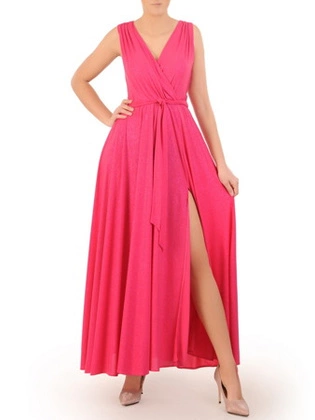 Wieczorowa, kopertowa suknia maxi z połyskującego materiału 31653